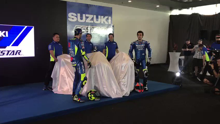 New livery!@suzukimotogp's 2017 colours unveiled by@andreaiannone29 & @Rins42! #2017StartsNow #MotoGP